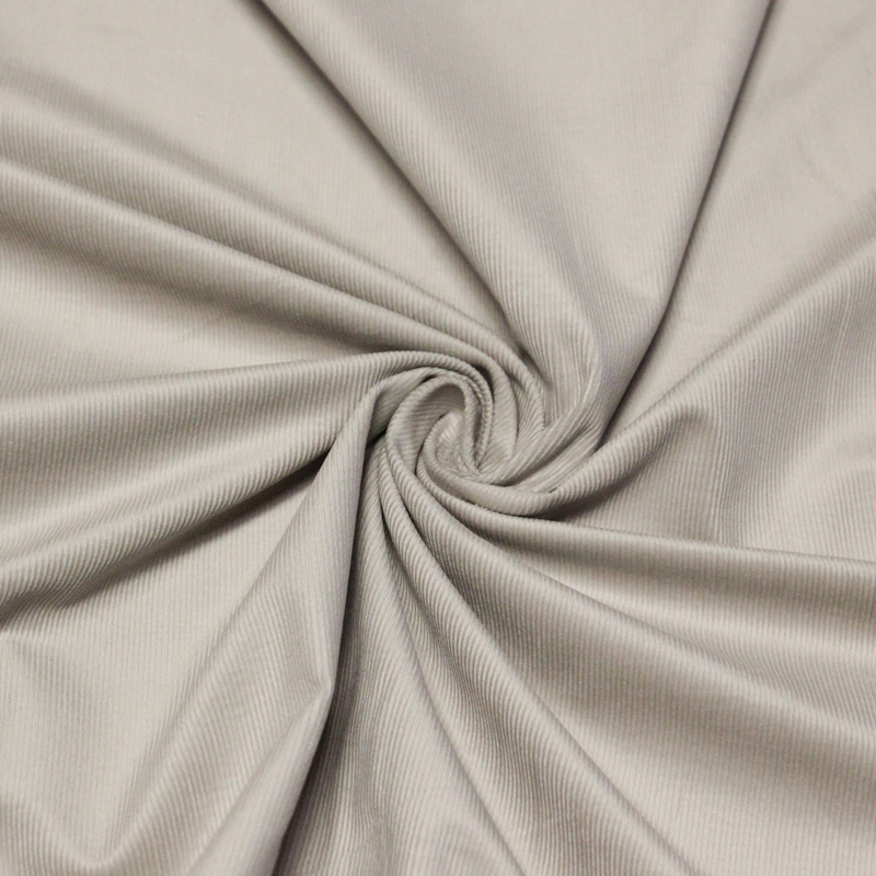 Le velours côtelé milleraies se distingue par ses côtes fines et régulières, qui ajoutent une dimension texturée unique tout en restant discrètes. La teinte "gris clair" renforce son aspect moderne et polyvalent, idéale pour créer des pièces intemporelles et élégantes. Grâce à l'ajout de modal et d'élasthanne, ce tissu combine douceur et légère élasticité, garantissant un confort optimal pour tous vos projets couture.