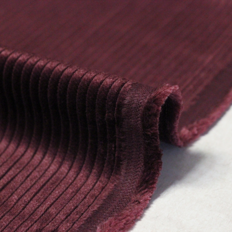 Le velours côtelé Jumbo se reconnaît à ses larges côtes distinctives, caractéristiques d’un tissage dense doublé d’une opération de coupe technique qui crée cet effet de relief si graphique. Ce type de velours est prisé pour son aspect texturé et son allure structurée, idéale pour les vêtements de saison. Le coloris bordeaux de ce tissu apporte une touche de raffinement immédiate, profonde et chaleureuse, parfaite pour créer des pièces au style affirmé. C’est une teinte riche qui évoque l’élégance des tenues d’automne-hiver, et qui s’accorde facilement avec des tons neutres, bruns, crème ou bleu marine.