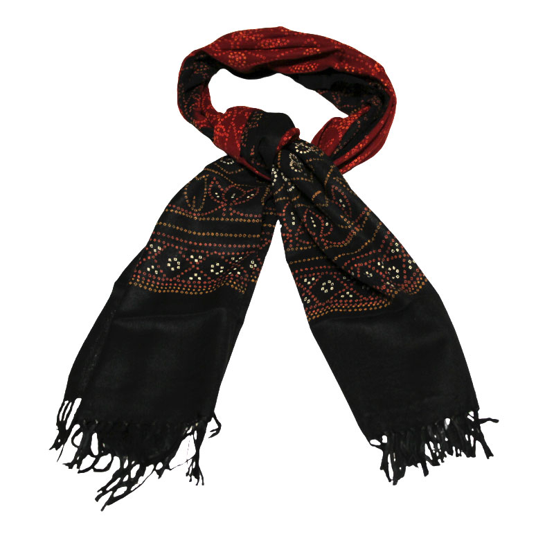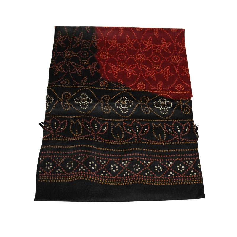 Son design bicolore joue sur un subtil contraste entre un rouge bordeaux profond et un noir intemporel, rehaussé par des motifs délicats qui ajoutent une note raffinée. Parfaite pour l’automne, l’hiver ou les soirées fraîches, cette étole peut être portée de nombreuses façons : autour du cou pour un style classique, en écharpe légère sur un manteau, ou drapée sur les épaules pour un look élégant.