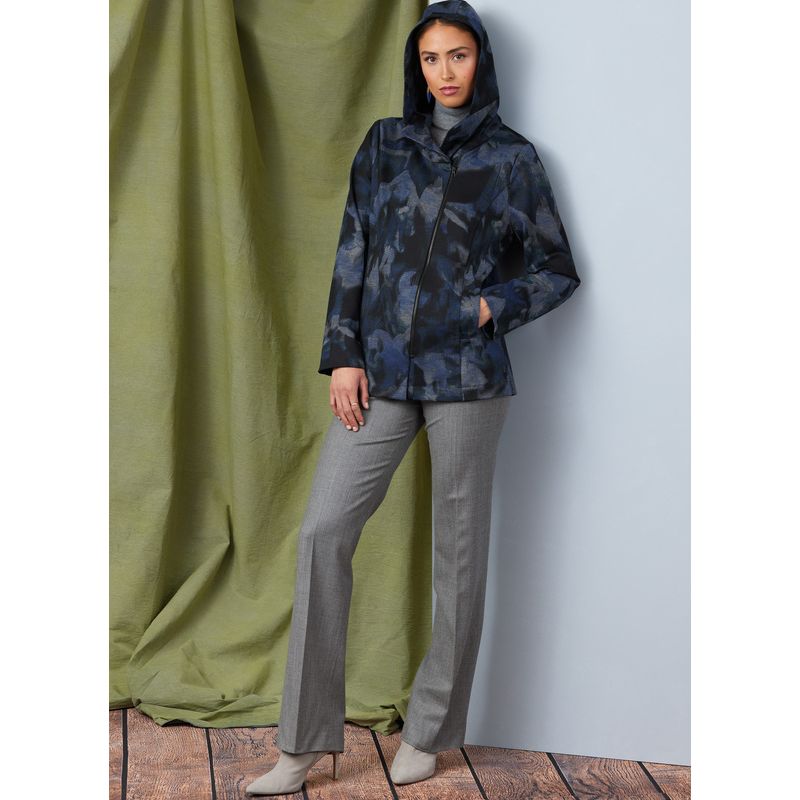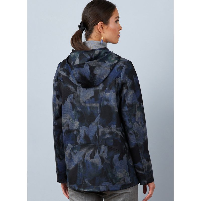 VESTE EN DEUX LONGUEURS (J. FEMMES)CAPTION: Veste semi-ajustée en deux longueurs avec devant asymétrique à fermeture à glissière séparable, découpe princesse, manches en deux pièces et doublure sur les poches passepoilées. Modèle B à capuche.TISSUS CONSEILLÉS: Tissus tissés extensibles tels que Denim, Twill, Tissus de poids pour veste avec élasticité, Tricots stables tels que Ponte, Scuba léger. Entoilage: Tricot thermocollant. Doublure: Tissu à doublure.