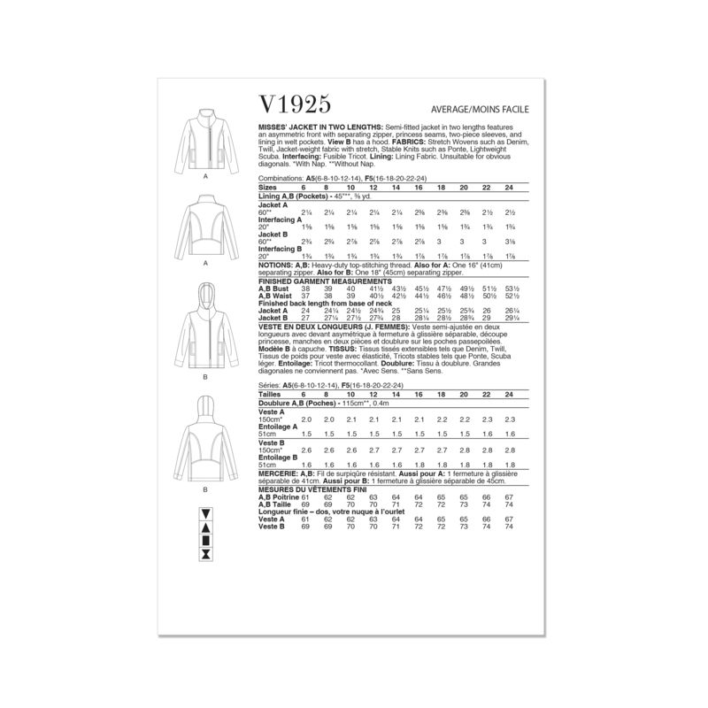 Patron Vogue 1925 A5 - Veste femme coupe semi-ajustée