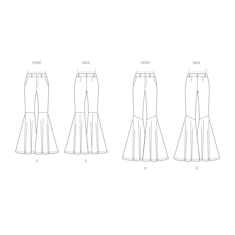 Pantalons évasé sur la partie inférieure, à 2.5cm audessousde la taille. Pantalons avec fermeture à braguette sur le devant, poches sur le côté devant, pinces au dos, parementures d’ourlet en biais et ourlets piqués.Tissus tissés extensibles, Twill tencel, Tissu pour costume en laine. Doublure A,B: Tissu à doublure. Entoilage A,B: Thermocollant léger.