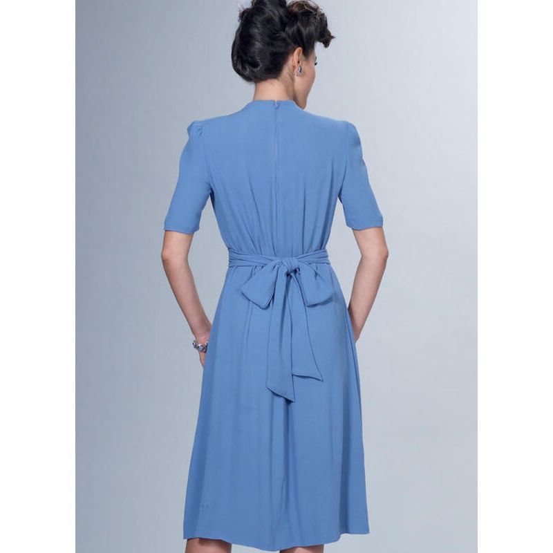 Le patron Butterick 6485 est un modèle exceptionnel pour créer des robes vintages avec un charme rétro authentique. Inspiré des tendances de 1944, ce patron permet de réaliser des robes amples avec des détails originaux au niveau des épaules et de la poitrine, ainsi qu'un nœud à la taille et des variations de manches. La robe dispose d'une fermeture éclair à l'arrière, d'un pli tuck à l'avant, et de liens attachés, offrant une élégance intemporelle. Le modèle B comprend un devant contrastant, ajoutant une touche d'originalité. Ce patron est parfait pour ceux qui cherchent à recréer le style vintage avec une touche contemporaine.