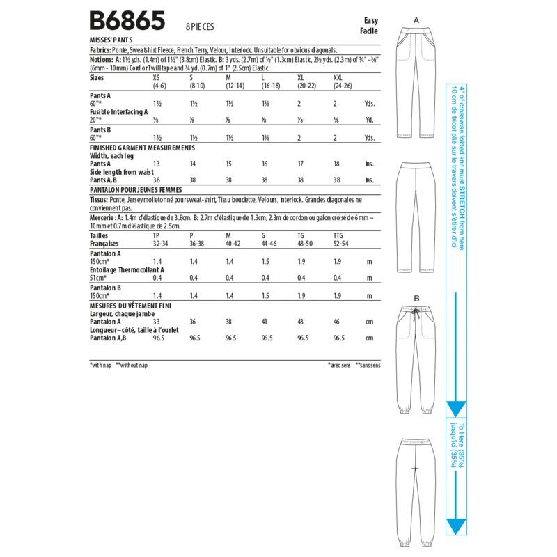 Le patron Butterick 6865 est un modèle de pantalon pour femmes, facile à enfiler avec une taille élastique. Il se caractérise par sa simplicité et sa polyvalence, permettant de créer des pantalons confortables adaptés à différentes occasions. Les variations de poche et de ourlet offrent des options supplémentaires pour personnaliser le vêtement. Ce modèle représente un choix idéal pour ceux qui recherchent un projet de couture simple mais élégant.