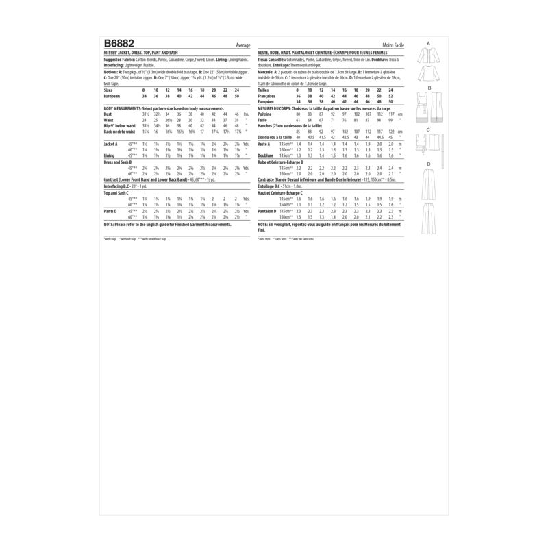Patron Butterick 6882/B5 - Veste, robe, haut et pantalon