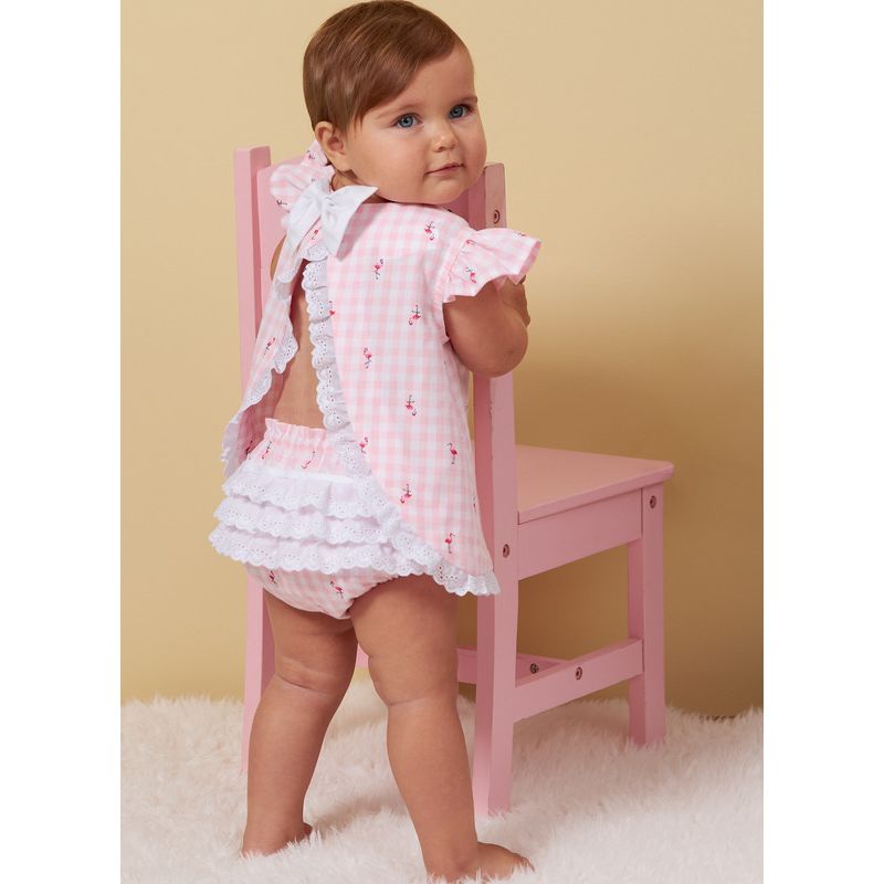 Le patron Butterick 6884 présente un design charmant et intemporel pour les tout-petits, combinant à la fois élégance et confort. Avec son haut en A-ligne et ses plis cousus à l'avant, ce modèle apporte une touche de délicatesse et de sophistication. La fermeture à boutons dans le dos facilite l'habillage. Quant à la culotte, elle est conçue pour offrir un confort optimal avec son élastique à la taille et aux jambes, tout en ajoutant une touche adorable avec ses volants à l'arrière. Ce patron incarne une fusion parfaite entre style classique et praticité, idéal pour créer des vêtements uniques pour les tout-petits.