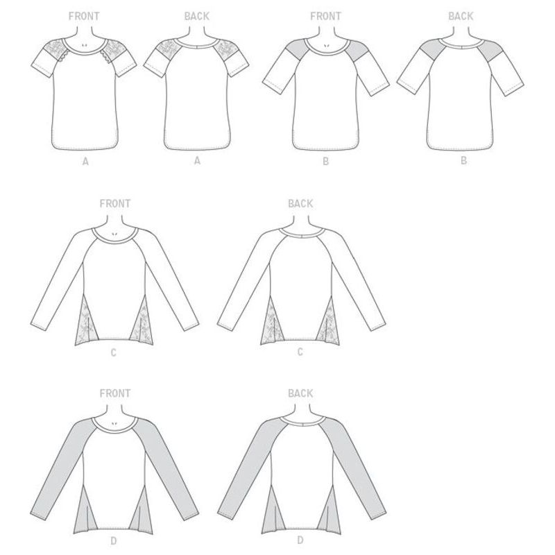 Découvrez le patron McCall's 7286, conçu spécialement pour les femmes qui cherchent à enrichir leur garde-robe avec des hauts ajustés et élégants à manches raglan. Ce patron polyvalent inclut plusieurs variations, dont des bandes de cou et des ourlets variés, ainsi qu'un ourlet étroit pour une finition soignée. Les options A et B proposent un overlay, un ourlet en forme avec ourlet piqué sur les manches, tandis que les options C et D sont dotées d'inserts latéraux, offrant une belle diversité de styles à explorer.