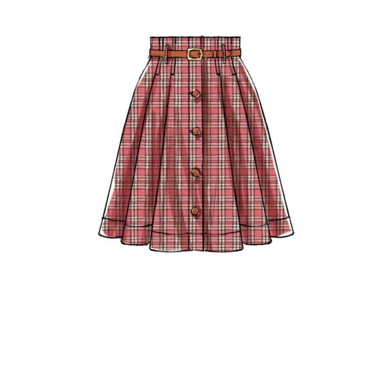Plongez dans l'univers de la création avec le patron McCall's M7906, un modèle qui vous permet de réaliser des jupes plissées très amples, parfaites pour ajouter une touche d'élégance et de féminité à votre garde-robe. Ces jupes se distinguent par leur taille haute, rehaussée de 2 pouces au-dessus de la taille naturelle, et se ferment par une rangée de boutons sur le devant. Les variantes de ce modèle offrent différentes longueurs et des passants pour ceinture, étroits pour les modèles A et C, destinés à une ceinture, et larges avec une ceinture à nouer pour le modèle D, permettant une personnalisation selon vos envies et occasions.