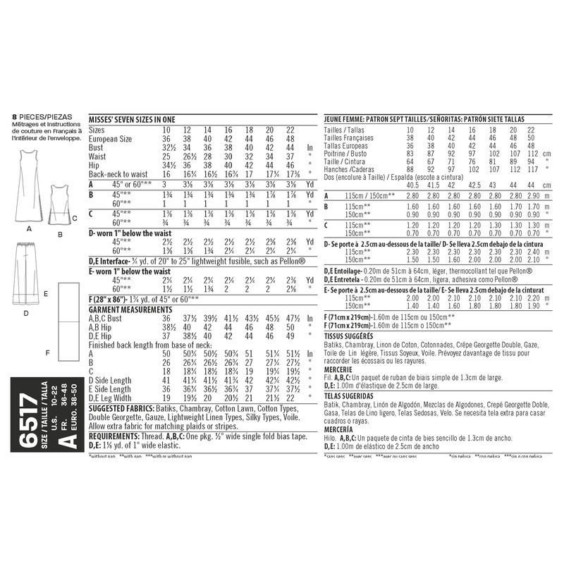 Le New Look 6517 est parfait pour créer des tenues décontractées, idéales pour les voyages ou les journées estivales. Les pièces peuvent être mixées et assorties pour créer une variété de looks adaptés à toutes les occasions. La robe longue et la tunique apportent une touche de féminité et d'élégance, tandis que le top court et les pantalons offrent confort et style.