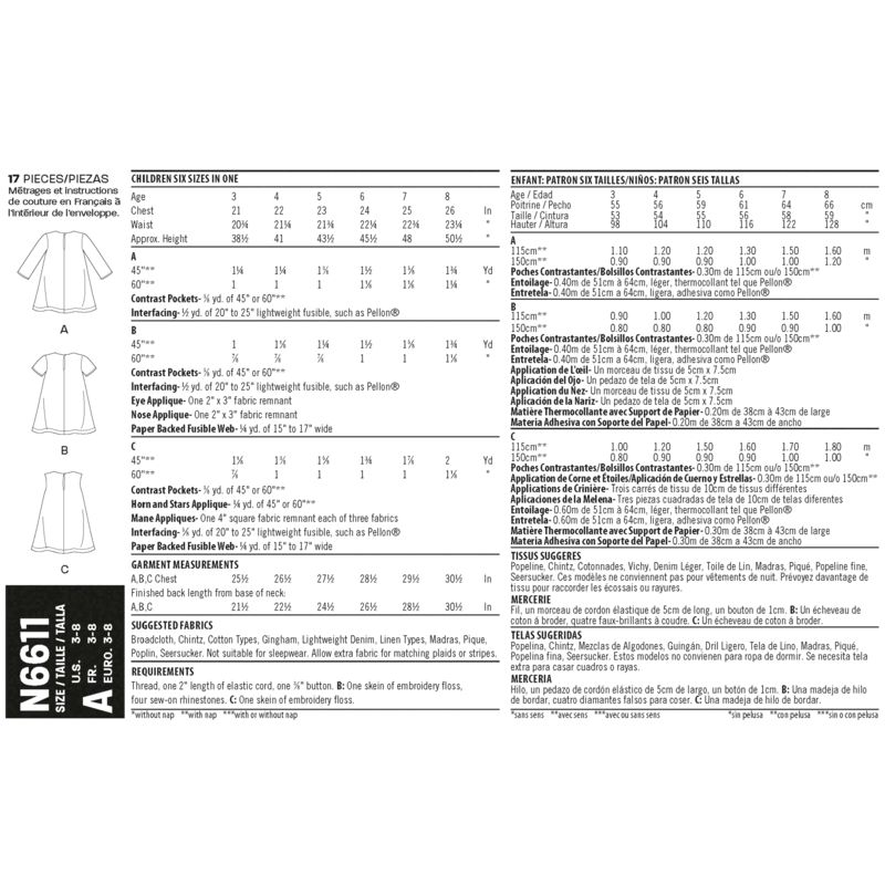 Le patron de couture New Look 6611 est parfait pour créer des robes adorables et originales pour enfants. Ce modèle inclut plusieurs variations de manches et des options de poches décoratives en forme de motifs ludiques, ainsi que des appliqués, offrant ainsi de nombreuses possibilités de personnalisation. Conçue comme une robe à enfiler avec une fermeture au dos, elle est facile à porter et confortable pour les enfants.