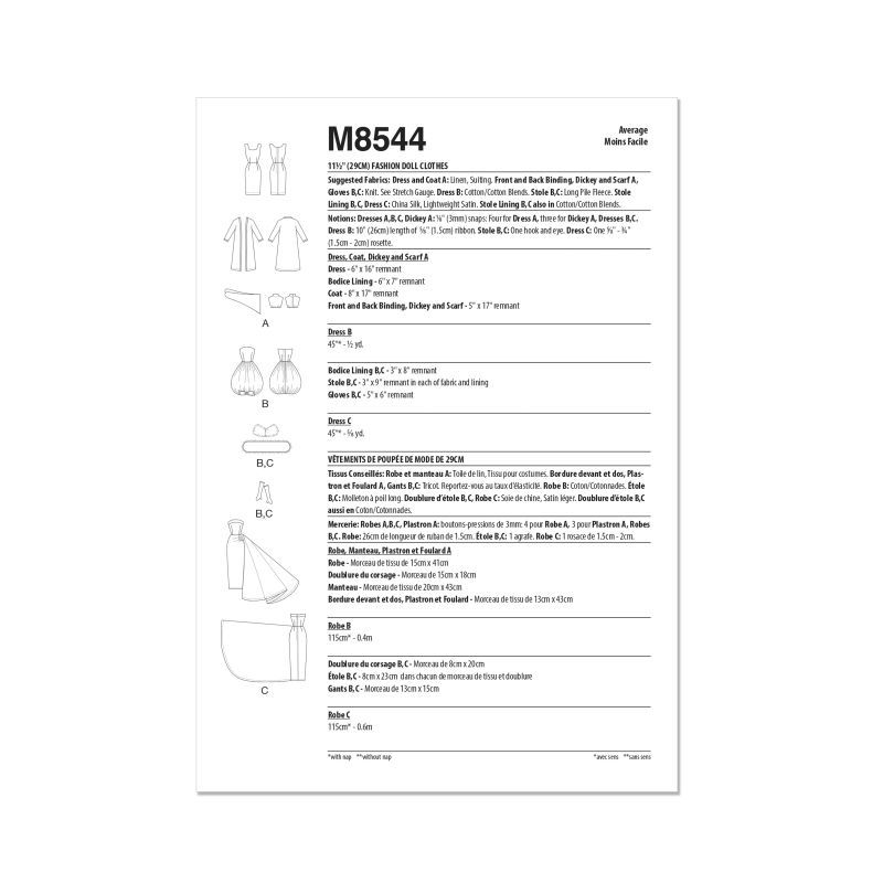 Le patron McCall's 8544 vous permet de confectionner une variété de tenues élégantes et détaillées pour vos poupées de 29 cm. Ce modèle inclut des options pour créer des robes, des jupes, des pantalons et des hauts, offrant ainsi une garde-robe complète et personnalisée pour vos poupées. Les détails précis et les finitions soignées garantissent un résultat professionnel, tandis que les instructions claires en plusieurs langues facilitent la réalisation, même pour les débutants. Ce patron est parfait pour les passionnés de couture et les collectionneurs souhaitant habiller leurs poupées avec style et créativité. Que ce soit pour compléter une collection ou pour offrir un cadeau unique, le patron McCall's 8544 est un choix idéal.