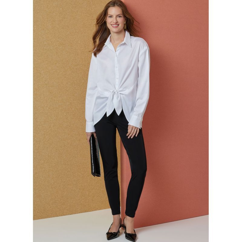 Le patron Butterick 7011 vous permet de confectionner un chemisier boutonné sur le devant, doté d'un col évasé et de manches montées, offrant une allure élégante et polyvalente. Ce modèle propose deux variations distinctes pour s'adapter à vos préférences stylistiques. La première version présente un chemisier court avec des manches courtes, idéal pour une tenue décontractée et estivale. La seconde version offre un ourlet asymétrique, des manches longues avec poignets boutonnés et une ceinture à nouer sur le devant, apportant une touche moderne et sophistiquée. Les épaules tombantes et le pli creux au dos ajoutent du confort et une liberté de mouvement, tout en maintenant une silhouette flatteuse. Les instructions claires et détaillées rendent ce projet accessible aux couturières de niveau intermédiaire, vous guidant pas à pas dans la réalisation d'une pièce unique qui enrichira votre garde-robe.