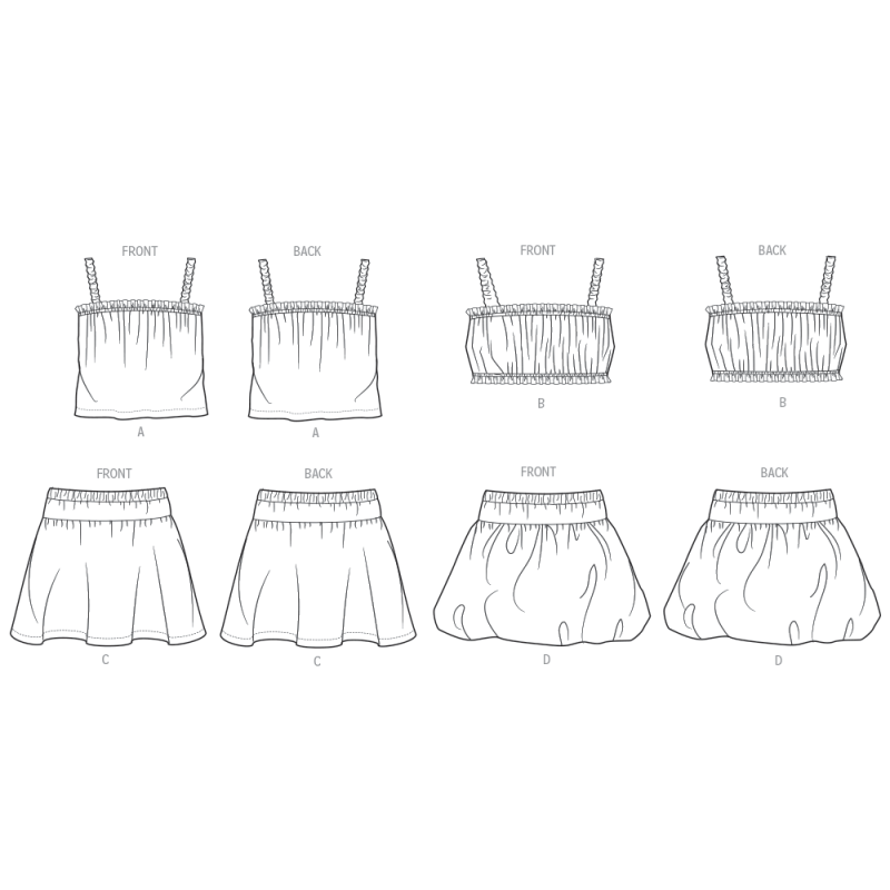 Ce patron Butterick n°7050 permet de créer un ensemble adorable composé d’un top à volants et d’une jupe ample ou bouffante. Pensé pour les enfants, ce modèle associe confort et fantaisie dans un esprit résolument joyeux. Dès les premières coutures, le plaisir de créer une tenue à la fois pratique et charmante est immédiat.