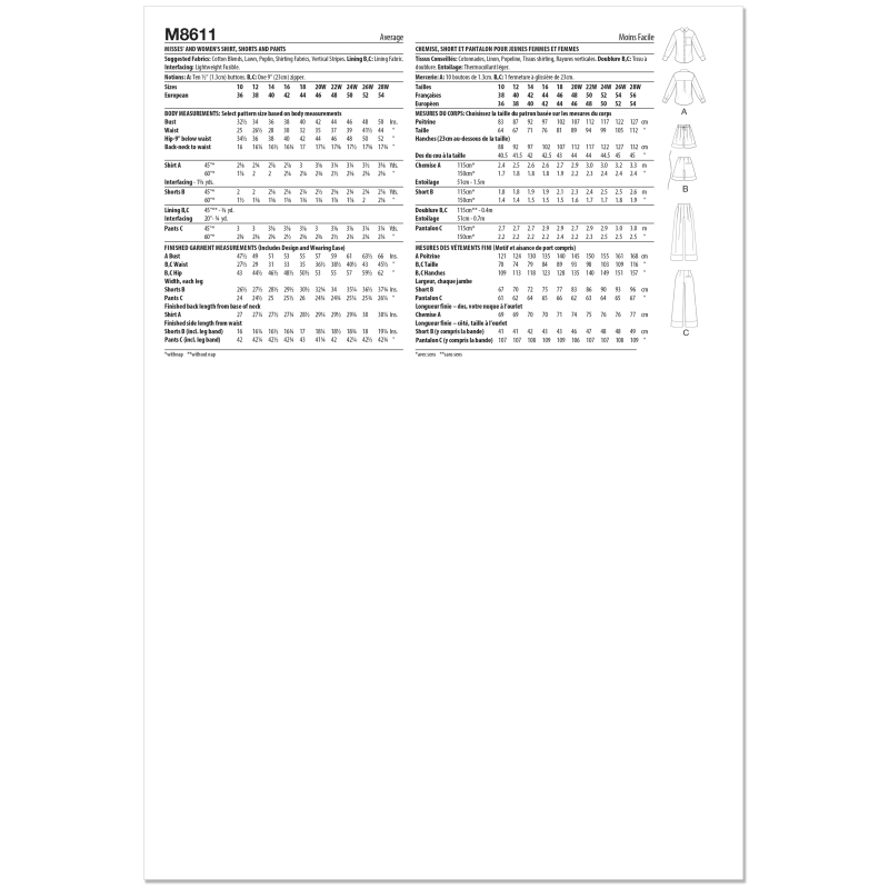 Patron McCall's 8611.BB (48-56) - Chemise boutonnée + short & pantalon coordonnés