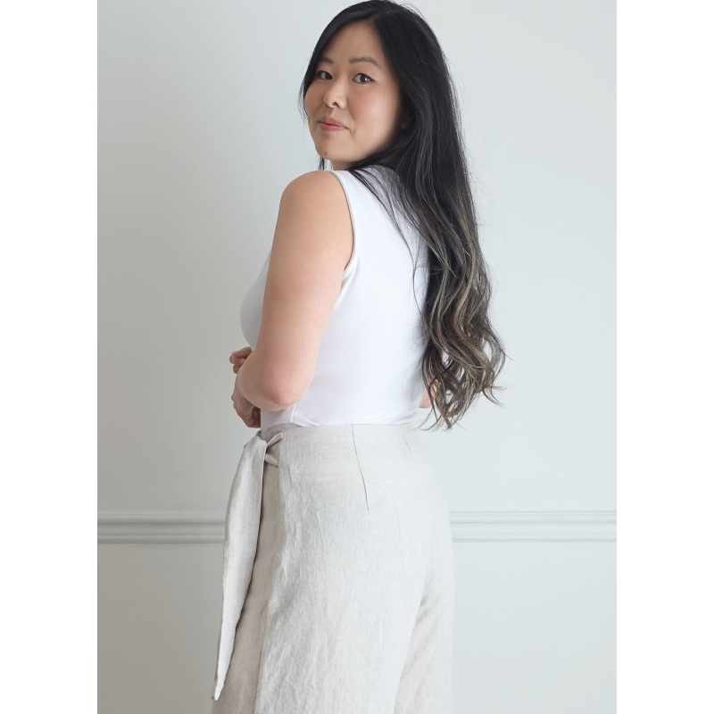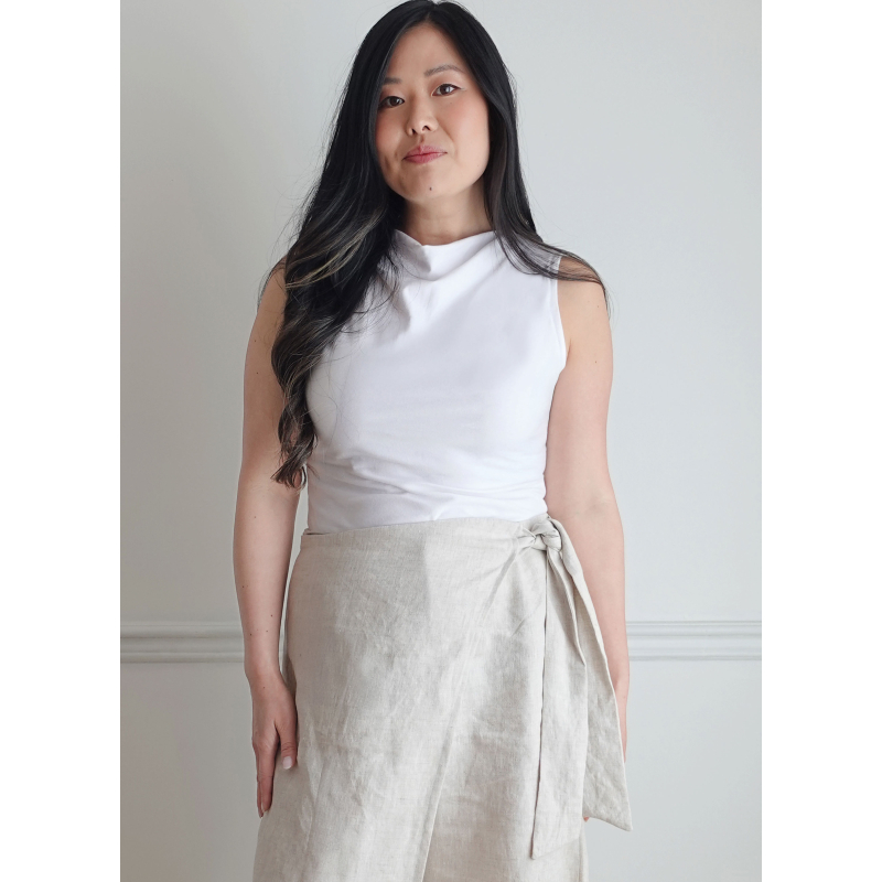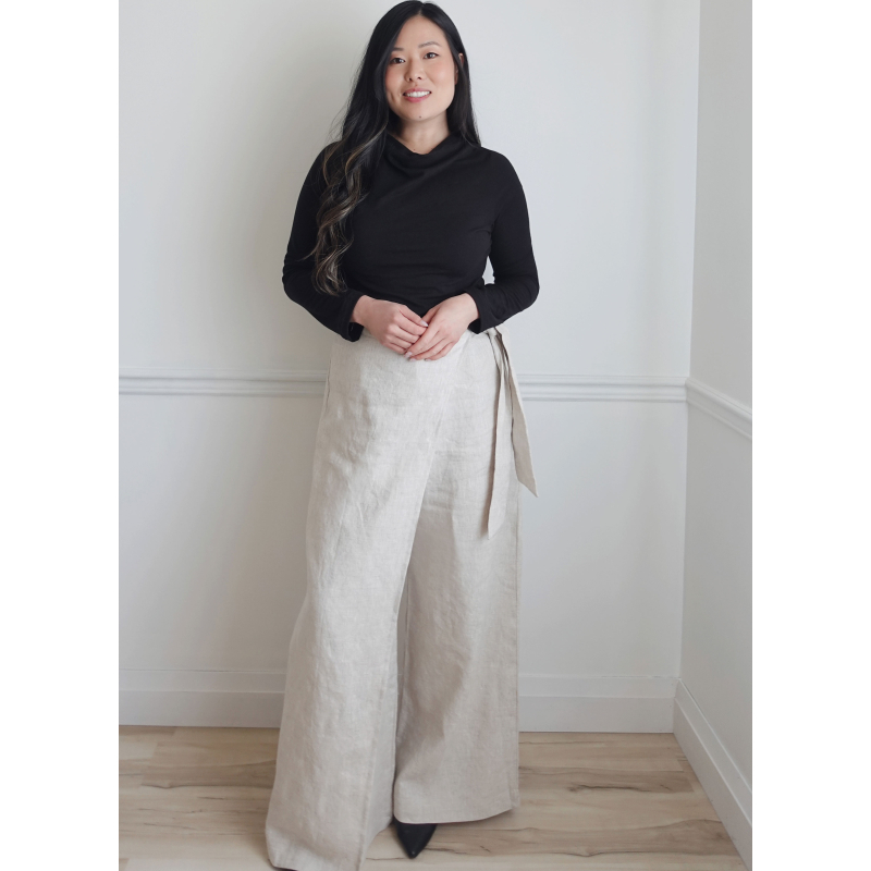Imaginez-vous en train de prendre en main le patron KnowMe n°2134 et d’entrer dans un univers où vous êtes la créatrice de votre style. Vous réaliserez un ensemble composé d’un top au col montant, manches longues ou sans manches pour une variation personnelle, associé à un pantalon à jambes larges, à taille structurée, ceinture nouée ou fermée, poches et fermeture devant — chaque détail pensé pour vous offrir une silhouette moderne et affirmée. À chaque étape, vous sentez la montée d’excitation : vous devenez l’artisan(e) de votre élégance.