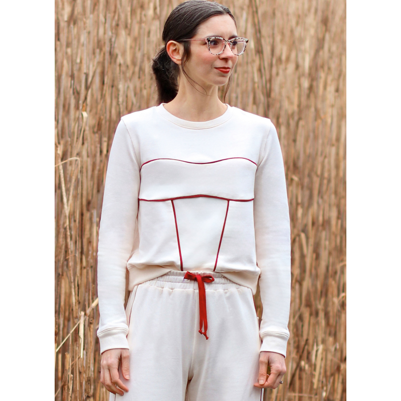 Libérez votre créativité et transformez-la en une tenue pleine d’assurance avec le patron Patron Know Me n°2138. Ce modèle propose un sweat ajusté, silhouette corsetée subtile, manches longues et encolure côtelée, associé à un pantalon à jambe large, taille élastique et poches latérales. Chaque étape de couture devient un acte de confiance : vous devenez la créatrice de votre propre look, façonné par vos mains et pensé pour vous.