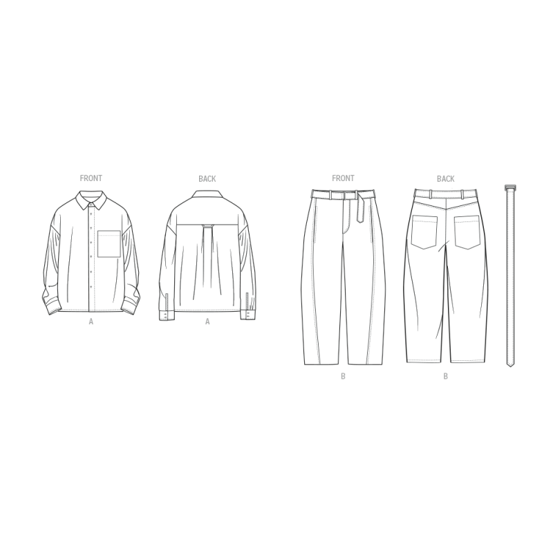 Avec le patron Know Me n°2142, vous envisagez un projet couture à la fois classique et audacieux qui vous permet de réaliser une chemise à col classique, épaules tombantes, manches longues à poignets avec fente, et une poche poitrine simple. Accompagnée d’un jean droit avec ceinture, passants, braguette boutonnée, coutures structurées et poches fonctionnelles, cette association devient le symbole de votre maîtrise créative. Vous, qui tenez les ciseaux, qui posez les épingles, qui ajustez les longueurs, vous donnez vie à un ensemble que vous pouvez porter avec fierté.
