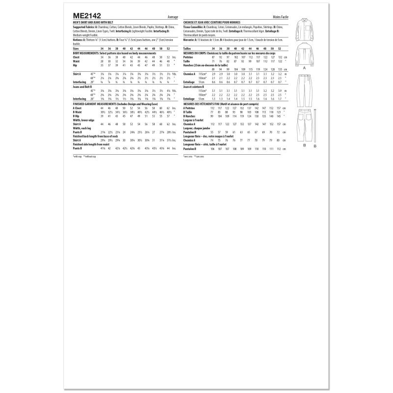 Patron KnowMe 2142.AA (46-54) - Chemise & jeans homme