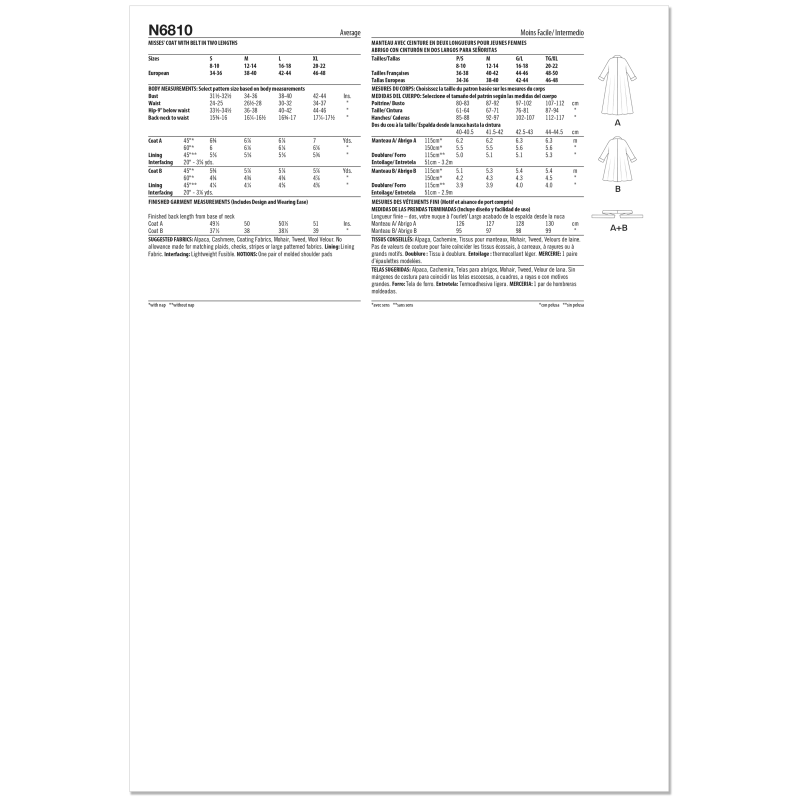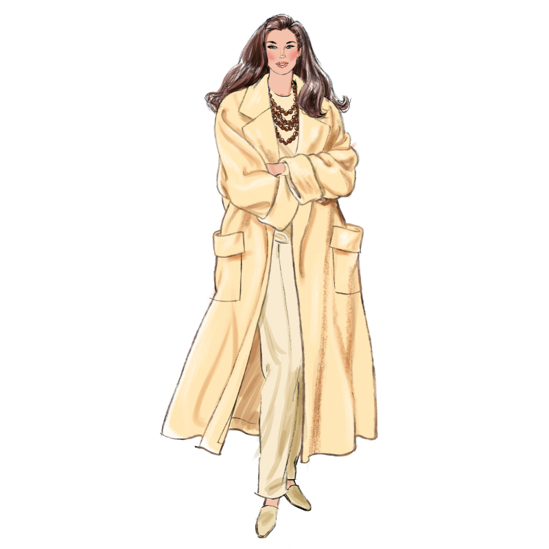 Laissez-vous emporter par l’audace du patron New Look n°6810 qui invite à créer un manteau swing surdimensionné, doublé, proposé en deux longueurs – à la cheville ou au genou – pour une allure fluide et élégante. Ses manches longues à épaules descendues, ses poignets retroussés, ses poches plaquées à rabat et son large col cranté lui confèrent un charme intemporel et une présence affirmée. En choisissant ce modèle, vous optez pour une pièce couture qui allie liberté et sophistication, parfaite pour affirmer votre style avec confiance.