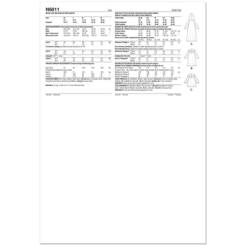 Patron New Look 6811 - Manteau à capuche deux longueurs