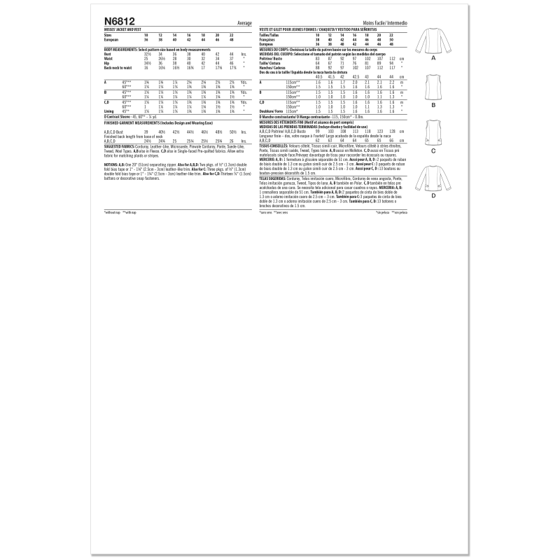 Offrez-vous le plaisir de créer une pièce d’impact avec le patron New Look n°6812, qui combine créativité et fonctionnalité pour un projet couture inspirant. Ce modèle propose une veste ou un gilet à fermeture zippée ou boutonnée, avec poches intégrées en couture ou poches plaquées à rabat et galons réglables : chaque détail est pensé pour vous engager dans une réalisation soignée et pleine de personnalité. En vous appropriant ce patron, vous ne faites pas que coudre, vous construisez une pièce qui traduit votre vision et votre maîtrise.