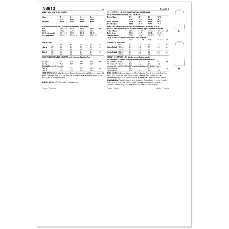 Patron New Look 6813 - Jupe portefeuille deux longueurs