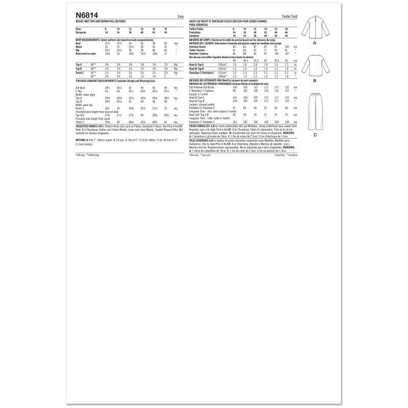 Imaginez un patron qui vous donne le pouvoir de confectionner une tenue complète avec style, simplicité et authenticité. Le patron New Look n°6814 propose des hauts à coupe boxy aux épaules tombantes et manches longues ainsi qu’un pantalon à taille élastiquée à nouer, tout remplissant votre désir de création personnelle. En choisissant ce modèle, vous franchissez le seuil d’un projet qui combine confort, élégance et plaisir couture.